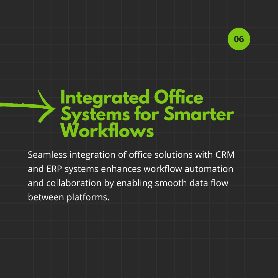 Seamless integration of office solutions with CRM and ERP systems enhances workflow automation and collaboration by enabling smooth data flow between platforms.