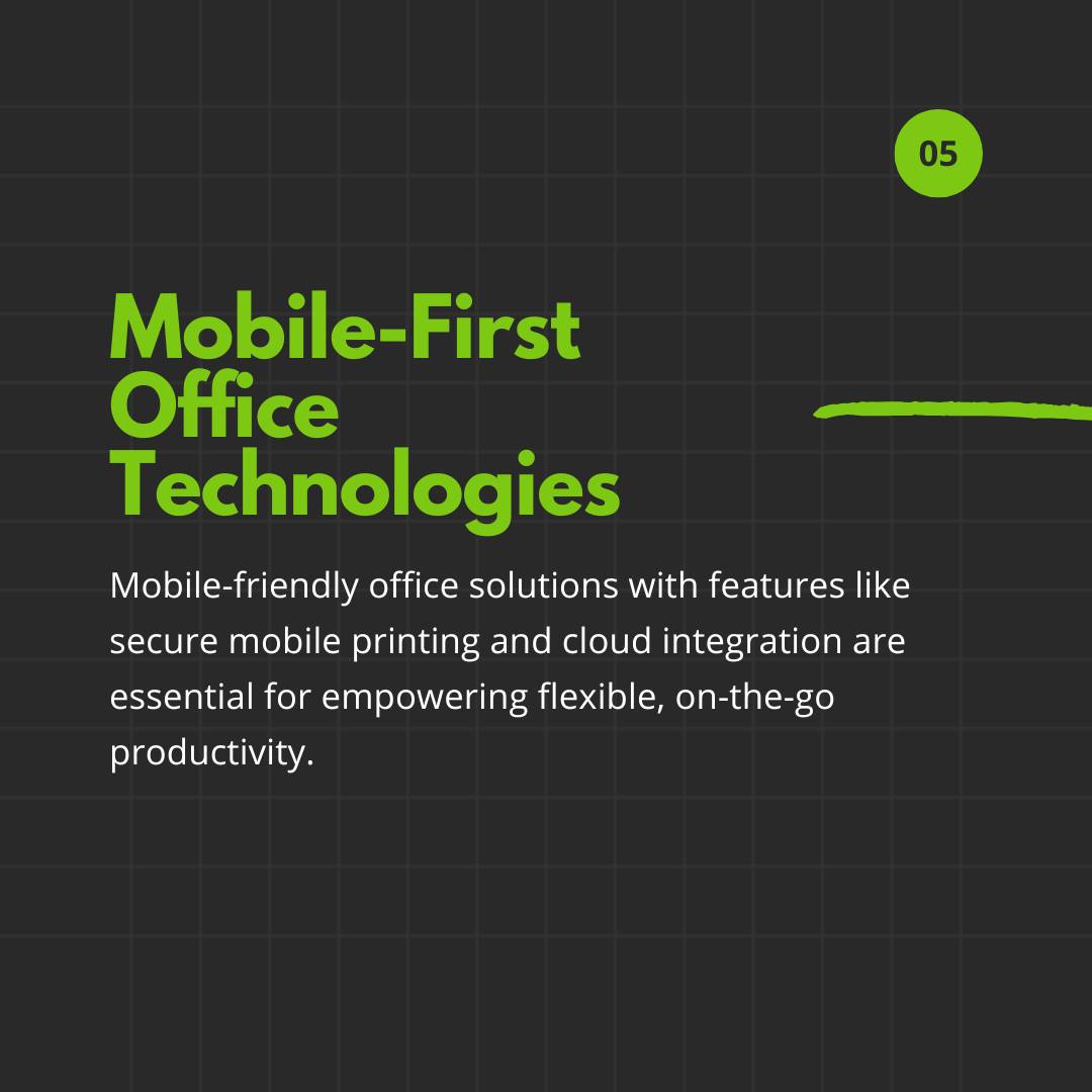 Mobile-friendly office solutions with features like secure mobile printing and cloud integration are essential for empowering flexible, on-the-go productivity.