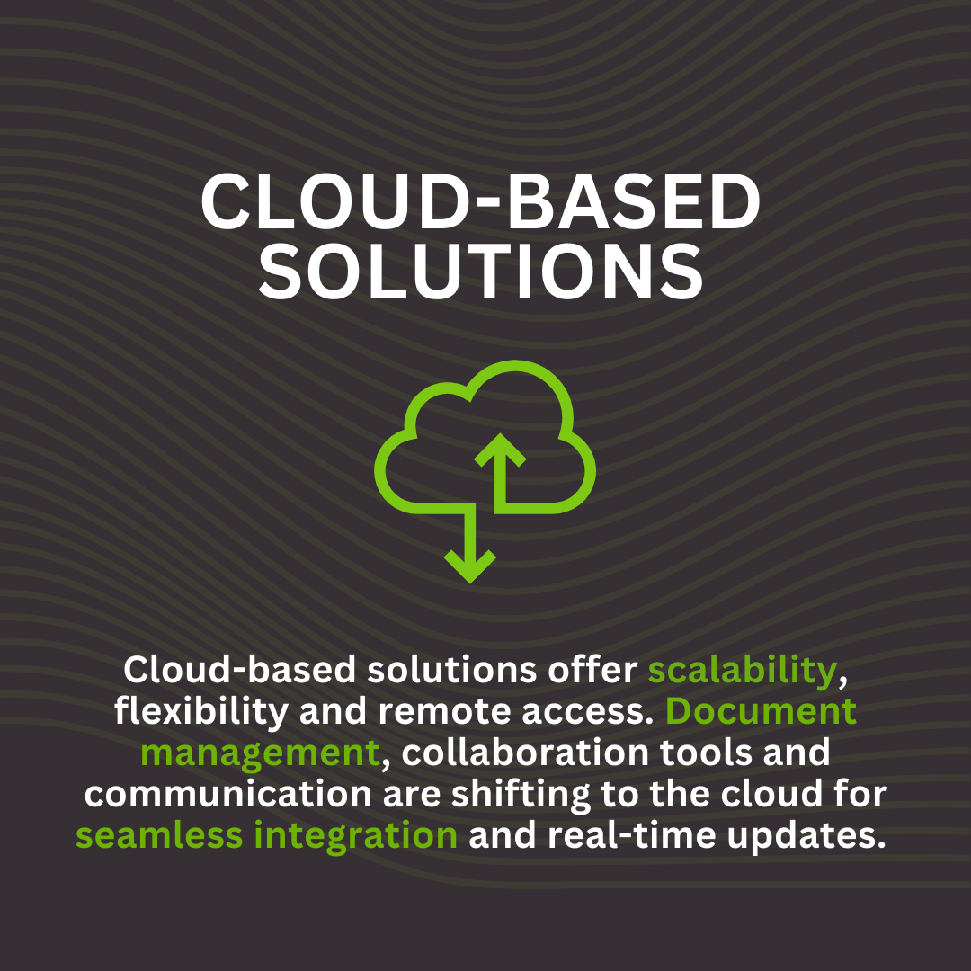 Cloud-based solutions offer scalability, flexibility and remote access. Document management, collaboration tools and communication are shifting to the cloud for seamless integration and real-time updates.